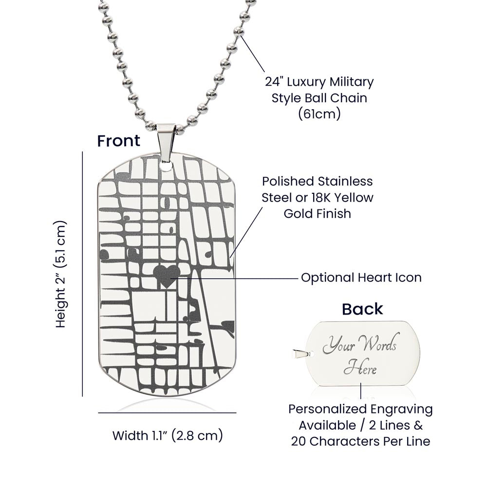 Engraved Map Dog Tag Necklace